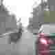 危ないよ、どいてどいてー!道路を横断する鹿が車を避けるジャンプ。海外の反応